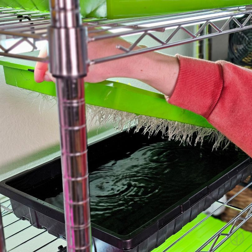 Pourquoi cela fonctionne pour les micro-pousses : Comme les micro-pousses ont des cycles de croissance très courts (7-12 jours de la graine à la récolte), elles ne passent que 4 à 8 jours suspendues au-dessus du réservoir d'eau. Cette brève période de contact réduit considérablement les risques généralement associés à la culture Kratky à long terme, comme la pourriture des racines dans les cultures matures.