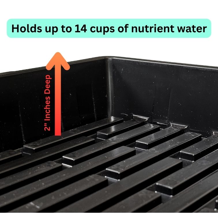 - Le plateau de 6,35 cm de profondeur peut contenir jusqu'à 14 tasses de solution nutritive